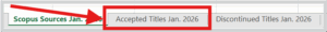 Коли журнал приймається для включення в базу даних Scopus, він потрапляє в категорію “Accepted titles in the process of being added to Scopus” – тобто «Прийняті видання, що перебувають у процесі додавання до Scopus». Знайти список цих журналів можна на Аркуші Accepted Titles: